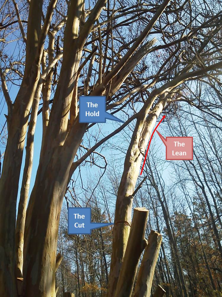 This near miss caused me to pause and consider my ways. I could have proudly called it skill and convinced myself that it landed where I had intended it to. But there are limitations to the lies I’ll believe, even if I am telling them to myself. Luck then, except that there is no such thing. I finally decided to call it mercy that it was the crepe myrtle’s crotch, not mine, that caught the falling branch. I thanked the Lord and continued on my course without changing my ways. I climbed back up into the center of the tree and started sawing away once more. But then I came to a larger limb and took inventory of where I was hemmed in.
